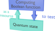 where Q = Q(x1, …, xn) is a function of all inputs, and \(S[Q]=\frac{Q}{| Q| }\) is the sign function, with the restriction that each party i can only broadcast a single bit \({m}_{i}={m}_{i}({x}_{i,1},\ldots ,{x}_{i,{l}_{i}},{y}_{i},{a}_{i})\) to every other party j. If party i guesses Gi(x, y) for the function f(x, y), its probability of success is given by