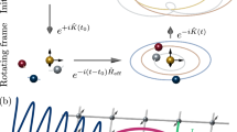 To diagonalize HXY on the 2-dimensional subspace spanned by \(\left|10\right\rangle\) and its future evolution, we used a hybrid quantum-classical optimization loop to minimize CfsVFF. For a state with neig = 2 the cost CfsVFF, Eq. (5), uses two training states \({\{U{({{\Delta }}t)}^{k}\left|{\psi }_{0}\right\rangle \}}_{k = 1,2}\) where U(t) is the first-order Trotter approximation of HXY. On the IBM quantum computer we evaluated the full cost function for each gradient descent iteration. However, the time available on the Aspen-8 device was limited, so to speed up the rate of optimization we evaluated the overlap on just one of the two training states per iteration, alternating between iterations (instead of evaluating the overlaps on both training states every iteration). To allow the movement through parameter space to use information averaged over the two timesteps, whilst only using a single training state per cost function evaluation, momentum was added to the gradient updates51.