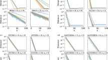 For ADAPT-GCIM, the algorithm terminates when the change in the lowest eigenvalue is smaller than 10−6 a.u. after \(T=\min \{{T}_{auto},{T}_{usr}\}\) number of consecutive ADAPT iterations, where Tauto is set to 20% of the number of unselected operators in the pool and Tusr is a user-defined constant. In this work, Tusr is set to 10 for H4 and 25 for the other molecules, reflecting different sizes of operator pools. The reason why the termination condition is heuristic, rather than gradient-based like ADAPT-VQE, is that ADAPT-GCIM uses VQE’s objective function, as an approximation, along with unoptimized parameter values during the ansatz selection. Hence, at the later iterations, while ADAPT-GCIM may already provide highly accurate energy estimations, the norm of the gradient vector at the operator selection can still remain relatively large.