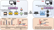 There is significant potential for improvement in our work to enhance the communication distance and SKR of the practical system. Specifically, add a feedback system that adjusts the optimal modulation variance in real-time, as per the channel conditions31. Furthermore, the use of efficient and suitable information reconciliation schemes can boost the system’s overall performance and increase the secure key rate through enhanced error correction efficiency32,33,34,35. For unstable free-space channels, the impact of the finite-key-size effect is significant, necessitating the rapid collection of a large number of symbols. This can be achieved by increasing the repetition rate of the system and employing a high-bandwidth balanced detector that combines high-speed DACs and ADCs36. Simultaneously, for faster real-time implementations, graphics processing unit (GPU)-based decoding schemes can be employed to enhance decoding throughput during post-processing37.