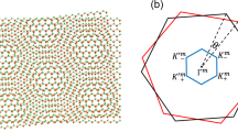 The bilayer WTe2 exhibits an orthorhombic lattice, the optimized lattice constants are calculated to be a1 = 3.447 Å and a2 = 6.284 Å. We construct a series of twisted bilayer WTe2 structures based on the method described in Ref. 21. For simplicity, we start with the normal stacking of perfect bilayer WTe2. As shown in Fig. 1, to construct the twisted bilayer WTe2, a supercell lattice as bottom layer is built, where b1 and b2 are superlattice basis vectors generated by primitive basis vectors a1 and a2. Correspondingly, the supercell basis vectors of top layer share a mirror plane ℳx with bottom layer, which are indicated by \({{{\mathbf{b}}}}_1^\prime\) and \({{{\mathbf{b}}}}_2^\prime\) in Fig. 1. Let b1 = ma1 + na2 and b2 = pa1 + qa2, in which m, n, p and q are integers, then the twist angle satisfies \(\theta = 2\arctan \left( {m\left| {{{{\mathbf{a}}}}_1} \right|/n\left| {{{{\mathbf{a}}}}_2} \right|} \right)\). The twisted bilayer structure is formed by rotating the top layer around the original point by angle θ and translate the top layer by vector b2, while the bottom layer remains fixed. To ensure that the twisted bilayer structure is commensurate, it has to be made sure that b1 is perpendicular to b2. However, this condition is hard to fully meet because of the non-particularity of lattice constants. Approximately, we use a looser condition, for example, the angle between b1 and b2 ranging from 89° to 91° is acceptable. It is important to note that the twist angle will change slightly after structural relaxation. More details on the forming process of twisted bilayer for orthorhombic lattice can refer to Ref. 21.