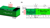 Three-dimensional and cross-section views of the planar PIN APD are shown in Fig. 1a, b, respectively. The device is designed to operate in MWIR based on Hg1−xCdxTe material. Cd component fraction is 0.3. The device simulations are conducted with commercial software-Sentaurus technology computer-aided design. Different physical models of the currents are adopted to perform the simulation. Details can be found in the “Methods” section.