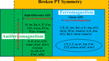 The cycloidal spin state in Fig. 1h accompanies electric polarization along y and the up-up-down-down spin state with two types of spins in Fig. 1j is associated with electric polarization along x32. Helical spins in Fig. 1i have chirality, i.e., broken all mirror symmetries. All of Fig. 1h–j with fully compensated spins have unbroken T and broken P, so belong to A-type altermagnets. A-type altermagnets with broken P and PT can exhibit transverse odd-order current-induced magnetization (i.e., even-order AHE), and some M-type and all S/A-type altermagnets do have broken all of P, T and PT, so they can also show transverse even-order as well as odd-order current-induced magnetization (i.e., odd-order as well as even-order AHE). For instance, the A-type altermagnet with a spiral spin structure in MPG m2m1ʹ in Fig. 1h can show transverse odd-order current-induced magnetization along z (x) with current along x (z) (i.e., even-order AHE with current along x or z and Hall voltage along y).