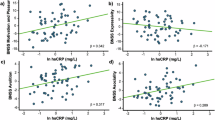 Blood was drawn between 8 and 10 a.m. on the day of testing. Study participants were instructed to fast for at least 8 h prior to the blood draw and this was verified by a questionnaire on the day of testing. To obtain plasma for the Olink panel, blood was drawn into ethylenediaminetetraacetic acid tubes (Sarstedt, Switzerland), centrifuged for 15 min at 1500 × g and plasma was frozen at −80 °C. hsCRP was measured in serum: blood was collected into a silica and gel containing tube (BD Vacutainer).