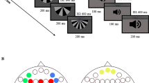 A 32-electrode EEG cap (Ag/AgCl, actiCAP system, Brain Products) with an actiCHamp amplifier (Brain Products, Gilching, Germany) was used. The electrodes were embedded in the cap at sites approximately equally spaced across the scalp, positioned according to a modified International 10–20 System (Fp1-Fp2-F7-F3-Fz-F4-F8-FC5-FC1-FC2-FC6-T7-C3-Cz-C4-T8-TP9-CP5-CP1-CP2-CP6-TP10-P7-P3-Pz-P4-P8-PO9-O1-Oz-O2-PO10). Eye movement artefacts (blinks and eye movements) were monitored via electrodes on the supraorbital and infraorbital ridges and on the outer canthi of both eyes. Continuous EEG recordings were referenced online to electrode FCz, and continuously digitised at 500 Hz. Electrode impedance was kept below 25 kΩ. EEG data were pre-processed using SPM 12 (http://www.fil.ion.ucl.ac.uk/spm/; version 7771). Continuous EEG was bandpass-filtered using a Butterworth filter between 0.5 and 30 Hz. The eye-blink correction procedure was consistent with previous single-trial computational analyses of EEG data43. Eye-blinks were detected using a threshold routine on the vertical EOG channel and all trials overlapping with eye-blink events were rejected. Corrected data was epoched into 500 ms segments around tone onsets (−100 to 400 ms) and baseline-corrected using a −100 to 0 ms prestimulus baseline. Remaining artefactual trials were rejected if the signal exceeded 100 μV. Channels were rejected and interpolated for sensor-level statistics if more than 20% of trials in a given channel were artefactual.