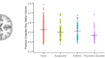 Psychotic-like experiences (PLEs) were assayed with the youth-reported Prodromal Questionnaire-Brief Child Version (PQ-BC48). The PQ-BC is a 21-item questionnaire that assesses positive PLEs (e.g., perceptual abnormalities, mild delusional thoughts) over the past month and has been validated in the ABCD sample48, providing more range and specificity than psychosis-related subscales from other measures. Analyses used distress scores [0 (not endorsed), 1 (endorsed with no distress) or 2–6 (1+distress score), range: 0–126]; supplemental analyses used sum scores (range: 0–21). Internalizing and externalizing symptoms were assayed with the parent-reported Child Behavior Checklist (CBCL)49. The CBCL is a widely used psychopathology rating scale comprised of 119 total items. Each item is rated on a three-point scale ("not true," "somewhat true," or "very true"). Analyses used raw scores (32 internalizing items, range: 0–96; 27 externalizing items, range: 0–81). The PQ-BC and CBCL are administered annually beginning at the ABCD study baseline visit. Descriptive statistics can be found in Table 1.