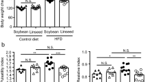 C57BL/6J wild-type mice (male, 6–8 weeks) and ApoE−/− mice on a C57BL/6J background (male, 6–8 weeks) were supplied by Shanghai BK Co., Ltd. (Shanghai, China). The animals were housed in a specific pathogen-free environment with a 12 h light/dark cycle, a temperature of 22–26 °C, and a humidity of 50 ± 10%. Mice were acclimated for two weeks before grouping and were fed standard mouse chow (Medicience, Co., Ltd., Jiangsu, China) with free access to water during this period. After that, mice were divided into five groups (n = 8 per group): (1) CK group (wild-type C57BL/6J mice fed a control diet with an n-6/n-3 fatty acid ratio of 6.55); (2) M group (ApoE−/− C57BL/6J mice fed a HFD diet (20.0% protein, 40.0% carbohydrate, 40.0% fat (MD12015, Medicience), with an n-6/n-3 fatty acid ratio of 8.58); (3) PLL group (ApoE−/− C57BL/6J mice fed on HFD supplemented with Pls at a dosage of 150 mg/kg/day, resulting in an n-3/n-6 fatty acid ratio of 6.89); (4) PLH group (ApoE−/− C57BL/6J mice fed on HFD supplemented with Pls at 450 mg/kg/day, yielding an n-3/n-6 fatty acid ratio of 4.98)); (5) ATV group (ApoE−/− C57BL/6J mice receiving HFD plus ATV (10 mg/kg/day, dissolved in 0.9% saline, Pfizer, NY, USA), with the n-3/n-6 fatty acid ratio of 8.58). Mice were treated with either 0.1 mL 0.9% saline (CK, M, and ATV groups) or Pls (150 mg/kg and 450 mg/kg, sonication-emulsified in 0.9% saline), administered by oral gavage once daily in the morning. The dosages of Pls and ATV in the diet were calculated based on our previous study58, and the mice were treated for 8 weeks, weighed weekly during the interventions. At the end of the interventions, all experimental mice were fasted for 12 h and subsequently anesthetized with sodium pentobarbital (40 mg/kg, intraperitoneal injection). Blood was collected from the orbital sinus of the anesthetized mice. Following blood collection, the mice were euthanized through cervical dislocation while under anesthesia. The blood samples were centrifuged at 1500 × g for 10 min at 4 °C after standing at room temperature for 1 h, and the obtained serum was stored at −80 °C for subsequent analysis. Parts of liver, heart, aorta, and epididymal adipose were immediately fixed in 4% paraformaldehyde after dissection, while the remaining parts of these tissues and the intestinal contents of the mice were stored at −80 °C for future analysis. This study was approved by the Ethics Committee for Animal Experiments at Zhejiang Chinese Medical University (approval number: IACUC-20230320-21). All mice were treated according to the guidelines of the Institutional Animal Care and Use Committee (IACUC) of China.