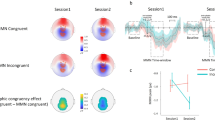 Offline preprocessing, artifact removal, and data quality assessment was carried out via the Harvard Automated Processing Pipeline for EEG (HAPPE) in MATLAB112. A spatially distributed subset of channels providing whole-head coverage was processed (excluding the EOG, M1 and M2 channels). HAPPE’s artifact removal steps included bad channel rejection, removal of 50 Hz electrical noise through CleanLine’s multi-taper approach113, and participant artifact rejection (e.g., eye blinks, movement) through wavelet-enhanced ICA with automated component rejection via EEGLAB and the Multiple Artifact Rejection Algorithm114. The average (SD) number of independent components (ICs) containing artifacts was 9.3 (3.7). Post-artifact rejection, any channels removed during the bad channel rejection were repopulated through spherical interpolation to reduce spatial bias in re-referencing. After filtered with a 0.1–40 Hz digital Butterworth bandpass filter with a 12 dB/oct roll-off, the EEG data were then re-referenced to the average reference and mean signal detrended. Epochs were created from − 300 ms pre-stimulus to 700 ms post-stimulus for each trial and baseline corrected using the first 100 ms. Any epochs with retained artifact were rejected using amplitude criteria (±100 μV), as in prior research110. After epoch rejection, the average (SD) number of trials retained on inconsistent character trials were 31.56 (5.32), 31.72 (5.94), 30.61 (7.26), 29.72 (6.85), 29.33 (6.34), and 30.22 (5.94) for equiprobable IOr, equiprobable IPh, equiprobable ISe, deviant IOr, deviant IPh, and deviant ISe, respectively.