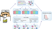 The performance of the subset-selection pipeline was calculated from synthetic true GRNs and datasets. The pipeline was applied by removing the genes not only from the dataset but also from the true GRN to calculate the accuracy of inferred GRNs after every removal and for further assessment. As a baseline for comparison, genes were also removed randomly from the true GRNs and datasets. This enabled the calculation of the statistical significance of the proposed pipeline, which are shown in Supplementary Table 1. To compare SNR-based subset selection to a procedure based on variation, we also applied entropy-based removal on the synthetic data where the gene entropy was calculated as in Zambelli et al.34 (Supplementary Figs. 51–54). The limitation of not having known GRNs for the L1000 datasets is overcome by means of synthetic data generated from the “true GRNs” that are generated as described above. Inferred GRNs based on these in silico datasets can then be benchmarked against the “true GRNs”. GRN inference can be performed via a variety of perturbation-based inference methods such as LSCO or LASSO. Both of these methods were applied to each subset.