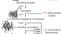 Antifungal susceptibility against S. cerevisiae wild-type and deletion mutants was tested in the drug hypersensitive genetic background 3∆ (pdr1∆ pdr3∆ snq2∆). Yeast cells were grown in YPD at 30 °C with shaking at 200 rpm overnight to reach a logarithmic phase (1–5 × 107 cells/mL). Overnight cultures were diluted with YPD and then inoculated in YPD containing 3% DMSO (with and without drugs) to reach 1–5 × 105 cells/mL and incubated at 30 °C in a static incubator. Poacidiene and poacic acid concentrations ranged from 0 to 256 μg/mL, and from 0 to 1024 μg/mL, respectively. After 18 h of incubation in 96-well flat-bottom microtiter plates (Corning Inc., Corning, NY, USA), the cell suspension was stirred with a Titramax 1000 rotator (Heidolph, Schwabach, Germany). The optical density of wells was measured using a SpectraMax Plus 384 plate reader (Molecular Devices, San Jose, CA, USA) at 600 nm. The inhibitory concentration of minimal inhibitory concentration plates at 50% cell survival (IC50) was calculated from dose-response curves. The IC50 was estimated using Markov chain Monte Carlo methods (5000 iterations including first 2000 iterations as warm-up in eight chains each) with the rstan package (https://mc-stan.org/users/interfaces/rstan) using reparameterizing of the four-parameter log-logistic equation implemented in the drc package in R58. 3∆ and quadruple mutants (mms1∆, mms22∆, rtt101∆, rtt107∆, rtt109∆, ctf18∆, rad51∆, rad52∆, rad54∆, rdh54∆, and srs2∆) were also tested for poacidiene-sensitivity ranging from 0 to 100 μg/mL. To test whether the IC50 values of the quadruple mutants differed significantly from 3∆, we employed a likelihood ratio test between the full and null models. The models indicated differences among 3∆ and quadruple mutants (mms1∆, mms22∆, rtt101∆, rtt107∆, rtt109∆, ctf18∆, rad51∆, rad52∆, rad54∆, rdh54∆, or srs2∆) in all of the four parameters of the log-logistic equation and differences other than IC50 values between 3∆ and each quadruple mutant, respectively. Thus, the difference in the degree of freedom between the full model and each null model was one. The p-value was calculated using the chi-squared distribution when the upper tail of IC50 was lower than 3∆ or the lower tail of IC50 was higher than 3∆ after Bonferroni correction (n = 11).