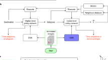 Here, rt is the reward received after taking action at in observation \({\hat{o}}_{t}\), γ is the discount factor that weights future rewards, and \(Q^{\prime} ({\hat{o}}_{t+1},{a}^{{\prime} };{\theta }^{-})\) is the Q-value output of the target network for the next observation and a given action \({a}^{{\prime} }\) that maximizes the Q-value. The reward rt is calculated using the following function: