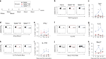 Spectral flow cytometry was performed to analyze APCs and T cells in the lymph nodes as indicated. Single-cell suspensions were treated with Fc Block (BD Biosciences) for 5 min at 4 °C before further staining. Live dead blue dye (Invitrogen) was used to stain dead cells. Analysis of APC and T cell phenotypes were performed using the fluorochrome-conjugated antibodies (Supplementary Table 1). Intracellular cytokine analysis was performed to identify SARS-CoV-2 spike-specific T cells. Single-cell suspensions from the dLNs were plated at 0.5 × 106 cells/well in a 96-well plate and stimulated with the spike (S) 1 or S2 peptide pools from JPT at a final concentration of 1 μg/mL for 6 h at 37 °C in RPMI and 10% FBS. To prevent the secretion of cytokines, GolgiStop (BD Biosciences) was added 1 h after the addition of peptides. Spike-specific T cells were measured by surface staining followed by fixation and permeabilization using BD fixation/permeabilization solution kit (BD Biosciences,) and intracellular cytokine staining (Supplementary Table 1). As negative and positive controls, cells were cultured in media without peptide stimulation or with phorbol 12-myristate 13-acetate (PMA) and ionomycin (BioLegend), respectively. T cells were considered to be responsive to peptide stimulation if the frequency of cytokine-expressing T cells was greater than 0.01% of the parent population after background subtraction. Samples were analyzed on a 5-laser Cytek Aurora flow cytometer (Cytek Biosciences). The data were analyzed using FlowJo software v10 (TreeStar, Inc.). Gating strategy for APC subsets, T cell phenotyping, and ICS are shown in Supplementary Fig. 1a and Fig. 2c, respectively.