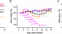 Four weeks after the second or the single dose of the vaccine, animals were challenged with guinea pig-adapted SUDV strain Boneface14, which is heterologous to the vaccine GP component (Fig. 6a–d). In the control group, a significant loss of weight (P < 0.0001) was observed in all animals starting on day 4 (Fig. 6b), followed by other signs of disease starting on day 6 (Fig. 6c). Viremia was detected in all control animals (Fig. 6d) which reached moribund condition and were euthanized on day 7 through day 13 post challenge (Fig. 6a). In contrast, none of the vaccinated animals in both prime and prime-boost groups died or showed any loss of weight or other signs of the disease during the observation period. Three guinea pigs in the prime group and two guinea pigs in the prime/boost group developed very low transient viremia detected only at one timepoint per animal (Fig. 6d) but did not show any disease symptoms (Fig. 6c). Taken together, our data show that MVA-VLP-SUDV completely protected guinea pigs from death and disease caused by SUDV. Importantly there was no difference in outcomes between the prime and the prime/boost vaccine groups thus demonstrating the efficacy of one dose of the MVA-VLP-SUDV vaccine.