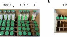 Each MALDI spot was analysed under the same settings for each instrument. A randomised acquisition sequence was used to control for any bias in sample preparation or run order. Table 2 provides the percentage RSD for the total ion intensity for all 12 replicates of each sample and 24 QC replicates prior to intensity calibration from analysis on the Sirius MALDI platform (equivalent data for the VITEK is given in Supplementary Table 1). These results show the total variation of the vaccine or falsified constituent samples. The range in RSD values for all samples except Amikacin was from 18 to 44% over all sample replicates for each group. This reproducibility in signal intensity was similar to the RSDs reported in other MALDI-based profiling studies using other sample types53. Figure 4a shows the vial-to-vial reproducibility specifically (e.g., inter-vial variability) for each genuine vaccine and falsified constituent, comprising individual percentage RSD calculations for the four sample preparation replicates of each vial. Equivalent data for the VITEK is shown in Supplementary Fig. 5a.