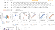 To assess the genetic stability of vaccine candidate OTS-228 and the retention of its attenuation and protective efficacy, we intranasally inoculated Syrian hamsters (n = 12) with the maximum possible dose of OTS-228 after 15 in vitro passages (OTS-228 P.15). The in vitro passages were conducted in triplicate (rep.1–3) using Vero E6 cells. Sequencing results (Supplementary Figure 1c, upper panel) revealed a total of 15 cell culture-adaptive mutations (rep.1: 4, rep.2: 7, rep.3: 8), as previously reported4. The three replicates were pooled in equal amounts and used as inoculum (106.0 TCID50/animal) (Fig. 3a). No mortality or weight loss was observed in either the vaccinated or contact hamsters (Fig. 3b, c). High genome copy numbers (105.9–107.7 gc/mL) were detected in the nasal washing samples of the vaccinated animals at 3 dpv, with only one of the six contact animals tested positive for viral RNA (104.1 gc/mL) (Fig. 3d). Sequencing of the OTS-228 genome from the 7 dpv nasal washing sample of the contact animal revealed a change in 1 of the 325 modified Leucine/Serine OTS codons (S3732L) located in nsp6 (OTS fragment 5). Four additional consensus mutations were detected: one synonymous mutation (ORF1a: nucleotide exchange A7729C) and three nonsynonymous mutations (two in the spike gene: D253V, L1197P, and one in the M gene: T7I). Three of these mutations were present in the OTS-228 P.15 inoculum (Schön et al. 4, Supplementary Table 5), while two emerged during hamster infection (or were present at undetectable levels in the inoculum), and 12 cell culture-related mutations were lost (Supplementary Figure 1c, lower panel). Additionally, a new minor synonymous variant was found in the N gene (nucleotide exchange A29467G, 42% variant frequency) (Supplementary Figure 1c, lower panel). Seroconversion was confirmed in the vaccinated animals at 19 dpv by ELISA (Fig. 3e) and the development of neutralizing antibodies (Fig. 3f), with the only PCR-positive contact animal also showing seroconversion (Fig. 3e).