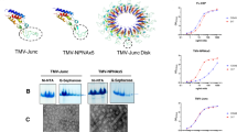 Samples were evaluated for purity on a 4–12% Bis-Tris pre-cast gel (ThermoFisher Scientific) and stained with Coomassie blue. Size exclusion-high pressure liquid chromatography (SEC-HPLC) was performed on a Waters e2695 module (Waters Corporation, Milford, MA, USA) using an Acclaim SEC-1000 4.6 × 300 mm column (ThermoFisher Scientific). 100 μL of sample was analyzed with a flow rate of 0.25 mL/min using 20 mM Tris, 20 mM NaCl (pH 7.0) as the mobile phase. Negative-stain transmission electron microscopy was performed on 300-mesh copper grids (Electron Microscopy Sciences, Hatfield, PA, USA) stained with 2% uranyl acetate and imaged using a JEM-1400 Flash microscope (JEOL, Toyko, Japan) at 30,000x magnification.