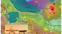 After the successful landing in southern Utopia Planitia, the six payloads on board the Zhurong rover have been switched on and tested. Under the guidance of the remote sensing survey, the Zhurong rover is travelling south for specific in situ investigations, gradually approaching the direction of the HLB and the suspected shorelines. The Zhurong rover may find out if there are any traces of ancient oceans. For example, (1) the low dielectric constant compared with that of the typical volcanic materials may indicate low-density sedimentary deposits, massive deposits of ground ice or a combination of the two29; (2) hydrated minerals, water-related sedimentary rocks and textures, and alteration minerals may reveal early water activities5; (3) some of the anomalous chemistry (such as unusual abundances of S and Cl and their possible presence as sulfate minerals and chloride salts) may be related to the presence of former standing bodies of water30. Currently, the rover travels about 20–30 m per sol and had travelled about 700 m by the end of July 2021. Given the capacity and good condition of the rover, an accessible region was selected as the investigation region for the nominal and short-term extended mission phases, which is shown in Fig. 3c.