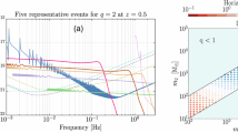 The background sources considered in this work consist in individual SMBHBs, which can span over several decades in mass, mass ratio and orbital separation. The SMBHB merger rate is highly uncertain, and constraining it is one of the major scientific goals of proposed GW observatories such as LISA9,76, TianQin78, pulsar timing arrays79,80,81,82,83 and other electromagnetic searches84,85. For the purposes of this work, we broadly follow the procedure detailed in ref. 86 and link the SMBHB merger rate to the well-established halo merger rate, based on the two Millenium simulations87:
