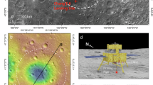 The Chang’e-2 global lunar topography data (CE2TMap2015)41,42, which have a spatial resolution of 7 m, was selected as the geographic reference datum. Using 142 sequential LCAM images and 120 pairs of stereo images recorded by the panoramic camera, the terrain data for the Chang’e-6 landing area was reconstructed based on photogrammetry principles43. The LCAM terrain data, which have a spatial resolution of 1 cm, cover an area of 2.4 km (east–west direction) times 3.0 km (north–south direction) around the landing site. Terrain data recorded by the panoramic camera have spatial resolutions of 1 mm or 3 mm and extend 18 m north of the landing site (Supplementary Fig. 2). The topographic map indicates that there is relatively high terrain close to the Chang’e-6 lander, and a downslope begins at a distance of ~2.8 m from the landing centre (Fig. 1).