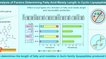 Arima, K., Kakinuma, A. & Tamura, G. Surfactin, a crystalline peptidelipid surfactant produced by Bacillus subtilis: isolation, characterization and its inhibition of fibrin clot formation. Biochem. Biophys. Res. Commun. 31, 488–494 (1968).