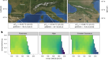 The strong association between SALP and temperature in the low-frequency domain suggests that the recent shrinkage of snowpack duration is mostly related to the warming occurring in the last century, whereas the year-to-year variability seems to be mostly associated with the typical variability in cold-season precipitation. The absence of any significant decreasing trend in the cold-season precipitation record, together with the recent occurrence of several record-breaking events (2001, 1977 and 1983 are the first, second and fourth highest year on the 1834–2018 record for October–May precipitation; Fig. 3) reduces the perception, of local residents, tourists and authorities, of how remarkable the long-term reduction in snowpack persistence of the last decades is40,41,42. However, those extreme snow accumulation events did not turn into any exceptional long-lying snowpack as current warmer temperatures are always inducing a faster melting43.