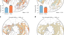 Vegetation phenology effects on drought recovery are probably pervasive in the mid- and high-latitudinal Northern Hemisphere, where vegetation growth is characterized by a marked phenological cycle12,16,17. Drought recovery is sensitive to and dependent on multiple complex and interacting factors including vegetation phenology, drought timing and anomalies in seasonal bioclimatic factors. These factors impact the overall timing of drought recovery which can occur relatively quickly over a single growing season (RSGS) or persist to subsequent growing seasons (within multiple growing seasons) (RMGS) (Methods). Vegetation phenology interacts with drought timing and thus determines subsequent vegetation growth11,14,15 (Fig. 1). On the one hand, spring phenology strongly governs vegetation growth and soil water consumption in the growing season11,12,13,18, thus influencing drought recovery. On the other hand, changes in temperature and snow accumulation (snow water equivalent (SWE)), during the non-growing season can directly determine subsequent spring phenology through biological processes19,20, thus influencing drought recovery (Fig. 1). Vegetation phenology is already being rapidly impacted by climate warming12,21 and factors such as shifting drought seasonality are already reshaping the vulnerability of ecosystems to intensified extreme drought events to a currently unknown degree. Quantifying these complex feedbacks requires a systematic understanding of the interactions between vegetation phenology, drought timing, bioclimatic factors and drought recovery (Fig. 1).