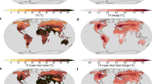 Extreme indices are estimated on the basis of maximum air and soil temperatures from different data sources. Subdaily air and soil temperatures at depths shallower than 10 cm were obtained from the FLUXNET2015 dataset16, the ICOS30,31,32,33,34,35,36,37,38,39,40, the ARPAV18, DWD19 and Météo France20. Fluxnet and ICOS stations provide measurements every 30 min or 1 h, DWD and ARPAV stations provide data every hour and Météo France stations provide data every 6 h. We obtained instantaneous land surface skin temperatures for the period 1991–2015 from the CM SAF Land Surface Temperature dataset from Meteosat First and Second Generation Edition 1 (ref. 21) and maximum air temperatures from the E-OBS daily gridded land-only observational dataset24. From the hourly product of the ERA5Land re-analysis22, we used air temperatures defined at 2 m of height and soil temperatures and moisture at the first soil layer (0–7 cm) from 1996 to 2021. All subdaily temperature series were converted to daily resolution selecting the maximum temperature of each day. Only days with no missing values were used to produce the daily maximum temperatures; otherwise that day is considered as a missing value.