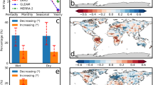 Although soil temperature links soil moisture and air temperature and is one of the main drivers of the terrestrial carbon cycle, the study of the more direct role of soil temperature in land–atmosphere feedbacks has not received as much attention as the role of soil moisture dynamics5,10. This is partially due to the tight coupling between air and soil temperatures at climate temporal scales. However, the relationship between air and soil temperatures is largely influenced by changes in land cover, aerodynamic conductance, soil water content and associated changes in soil properties12. While trends vary across meteorological stations, higher warming rates in soil than air have been recorded in China13 and Germany14, with meteorological stations in China also reporting different trends in maximum soil and air temperatures15.