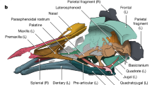 We are grateful to E. J. Rayfield, A. R. Cuff, Y. Kobayashi, S. Chatterjee, A. Turner and L. Witmer for providing CT data; to G. Watkins-Colwell for assisting with cleared and stained squamate embryo specimens; and to D. Smith for imaging. F. A. Jenkins, Jr, J. A. Gauthier, G. Wagner and G. Navalon provided useful discussion. E. M. Sefton, H. Maddin and J. Hanken commented on the early stages of the work as it was underway. All Yale authors are supported by funds from Yale University. D.J.F. is supported in part by NSF DDIG DEB 1500798 to B.-A.S.B and D.J.F. A.P. is supported by an NSF Postdoctoral Research Fellowship in Biology. J.C. was partially funded by an NSF Graduate Research Fellowship and by NSF DDIG DEB 1501690. A.A. was supported by NSF grant 1257122, the Templeton Foundation grant RFP-12-0 and by funds from Imperial College London. G.S.B, A.M.B., and M.A.N. are supported in part by NSF DEB 1457181.