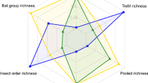 Overall, SDMs using Landsat reflectance bands as predictors performed well for most forest bird species when tested on 50% spatially discrete hold-out data (Extended Data Fig. 2; \(\bar x\) area under the curve (AUC) = 0.73 [range: 0.60–0.90]). SDMs therefore provided reliable estimates of habitat suitability and distribution for most of the 54 species. Species with lower model-prediction success tended to be associated with fine-scale forest structure (for example, individual tall trees, standing and fallen dead wood) which are poorly captured by satellite imagery.