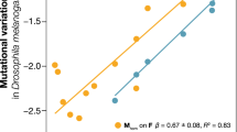 The relationship between developmental bias and macroevolution is consistent with fundamental constraints of wing shape development and evolution. However, owing to their polygenic basis and large mutational target sizes, the evolution of quantitative characters is typically not expected to be strongly constrained over the long time frames studied here2,20,51. Indeed, the study on drosophilids by Houle et al.18 found that a lack of mutational input is unlikely to explain the alignment between M and R in drosophilid wing evolution. To explore the possible influence of genetic constraints on the studied macroevolution of wing shape, we calculated the expected amount of divergence along the ten analysed wing shape dimensions (Fig. 3) under a scenario of pure genetic drift, which predicts that the rate of divergence should correspond to two times the mutational variance per generation52. Thus, if genetic constraints are limiting the evolution of some wing dimensions, we expect that the observed rates of divergence should be approximated by the predicted divergence based on the rate of mutational input. However, assuming an average of a single fly generation per year, and basing our calculations on estimates of M in D. melanogaster18, we found that the observed macroevolutionary variance along each of the ten dimensions is around 104 times smaller than expected under drift (Extended Data Table 3). Because most species studied here undergo more than one generation per year, this calculation underestimates the expected divergence under drift (for instance, central European populations of S. punctum have at least four generations per year, and D. melanogaster has about 15 generations per year53,54). Thus, genetic constraints alone are unlikely to explain low rates of divergence and the observed correlation between developmental bias and macroevolution.