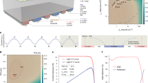 The optical simulation in Fig. 5b was performed using the SunSolve software provided by PV Lighthouse. In the simulation, we use refractive indices from the literature66,67,68,69,70 except for the TCO film, which we measured by ellipsometry. In SunSolve, ray tracing and thin-film optics were adopted with a Monte Carlo algorithm for sampling and averaging the absorption in each layer. Here, 1 million rays with zero zenith angle and air mass 1.5G were randomly generated for better confidence of the statistics; the 95% confidence interval of cell absorption is less than 0.01 mA cm−2.