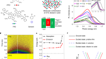 We thank O. Inganäs, V. Coropceanu, A. Yartsev, X. Zhou, Q. Liu, B. Yang, Y. Cui and G. Xu for insightful discussions. We thank the staff of the BL11 NCD-SWEET beamline at ALBA Synchrotron for their assistance in recording the GIWAXS data. We thank S. Bai for offering the ZnO used in the electron-only devices and J.-f. Poon for drawing the molecular structures. We thank Y. Li for his assistance in the cyclic voltammetry tests. The research at Linköping University was supported by the Swedish Strategic Research Foundation through a Future Research Leader programme to F.G. (FFL 18-0322), Swedish Research Council VR (grant number 2016-06146), Swedish Energy Agency (P2022-00756) and the Swedish Government Strategic Research Area in Materials Science on Functional Materials at Linköping University (faculty grant number SFO-Mat-LiU #2009-00971); Y.W., B.S. and K.V. acknowledge funding by the FWO (project G0B2718N) and the European Research Council (ERC, grant agreement 864625); S.H. and C.M. gratefully acknowledge support from the Knut and Alice Wallenberg Foundation through the project ‘Mastering Morphology for Solution-borne Electronics’; A.A.B. acknowledges the support from Royal Society and Leverhulme Trust; A.A.B. and N.P.G. thank D. Maslennikov for the help with the power-dependent transient absorption measurements; X.-K.C. acknowledges the supports from Suzhou Key Laboratory of Functional Nano and Soft Materials, Collaborative Innovation Center of Suzhou Nano Science and Technology and the 111 Project.