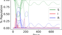 A Gillespie algorithm is commonly used to simulate stochastic systems with high variation in waiting times between consecutive events60,61,62,63. In our model, the population is represented as a vector of length eight, corresponding to the eight categories. The rates of all possible events (infection, recovery, death, mutation and vaccination) are calculated. The time of the next event in the model is drawn from an exponential distribution with a parameter dependent on the sum of all event rates, and an event is chosen with a probability proportional to its rate. The population is updated according to the event that occurred. The simulation is stopped when there are no more infected individuals in the population.