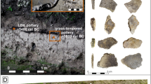 The analytical procedure for lipid extraction followed detailed published methods11. Briefly, samples were extracted and methylated in one-step with acidified methanol (H2SO4/MeOH, 1:5). Methanol was added to homogenized carbonized residues (10–20 mg) or drilled/crushed ceramic powders (0.5–1.0 g), sonicated for 15 min, acidified with concentrated sulfuric acid and the acidified suspension was then heated for 4 h at 70 °C. Lipids were extracted by phase separation with n-hexane (3 × 2 ml). Extracts were analysed by GC–MS in total ion current mode for general screening purposes, in selected ion monitoring mode to target specific markers of aquatic resources and by GC–C–IRMS to obtain the carbon isotope values of the most abundant fatty acids (C16:0 and C18:0). A selection of samples (Supplementary Information) was subjected to solvent extraction11. Lipids from ceramic powder were extracted using dichloromethane:MeOH (2:1, 3 × 4 ml), then dried under N2. The extract was trimethyl-silylated using N,O-bis(trimethylsilyl)trifluoroacetamide with 1% trimethylchlorosilane before high temperature GC–MS to detect either the presence and distribution of triacylglycerols or the presence of other intact lipids (for example, wax esters).