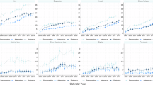 Basic characteristics between mothers and fathers were compared using the χ2 test. In the analysis of the secular trend in risk of suicide attempt, we first calculated annual sex-specific IRs of suicide attempt during preconception, antepartum and postpartum periods, as the number of first suicide attempt divided by accumulated person-years. Then, we calculated SIRs through direct standardization, using the distribution of age group of the accumulated person-years during follow-up between 2001 and 2021 as the standard. The 95% CI for SIR was calculated on the basis of the standard error60 and two-sided Z value (SIR ± 1.96 × standard error). Locally weighted scatterplot smoothing, with 0.8 as the bandwidth, was used to smooth the SIR and its 95% CIs61. As Sweden launched a national screening programme for maternal depression in 2010, for each period and sex, we examined the association between calendar year and IR of suicide attempt before/at and after 2010 separately and adjusted for groups of age. As a total of 12 comparisons were performed, we adjusted P values using the Benjamini–Hochberg method, to account for multiple testing62.