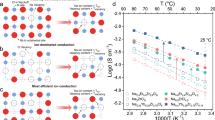 The ionic conductivity of the as-prepared samples was measured by a.c. impedance spectroscopy. For the temperature-dependent EIS measurement, ~120–130 mg of the samples was cold pressed into pellets with a diameter of 10 mm at ~330 MPa, and two stainless steel rods served as blocking electrodes. Impedance spectroscopy was performed using a VMP3 potentiostat/galvanostat (BioLogic) in the frequency range between 1,000 mHz and 7 MHz at different temperatures, and the amplitude was 20 mV. The electronic conductivity of the sample was evaluated according to the direct current polarization measurement on a cold-pressed pellet with applied voltages from 0.2 V to 1.0 V at room temperature.