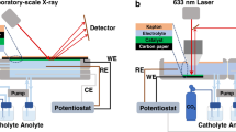 An ultraviolet–visible spectrometer (Agilent Cary 60) was used to detect and quantify the amounts of ammonia and nitrite in the electrolyte according to procedures previously established in the literature48,49. The liquid electrolyte was first diluted to match the suitable detection range for spectrophotometric analysis of each analyte, and then the sample absorbance was measured in the range 400–800 nm.