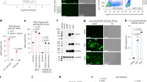 Using lentiviruses, we initially knocked down IFITM1 expression in NP69 and HEK293 cells. The efficiency of IFITM1 knockdown was confirmed using both RT−qPCR and western blotting (Extended Data Fig. 2b,c). Following infection with high-titre virus (multiplicity of infection: 1,000) for 3 h, IFITM1 knockdown cells showed approximately three times more EBV copies than controls (Fig. 1a and Extended Data Fig. 2d). After 72 h of EBV exposure, the green fluorescent protein (GFP)-expressing virus was detectable in infected cells. Approximately 2% of control cells were GFP-positive, which increased to 4% upon IFITM1 knockdown (Fig. 2b,c and Extended Data Fig. 2e–h). Representative images of EBV-infected cells are shown in Extended Data Fig. 2i. In addition, we established IFITM1 overexpression in HK1 cells by transfecting them with IFITM1 lentiviral vectors and control vectors (Extended Data Fig. 3a,b). After EBV exposure for 3 h, EBV copy number decreased by ~60% in IFITM1-overexpressed ECs relative to control cells (Fig. 1d and Extended Data Fig. 3c). After 72 h of EBV exposure, flow cytometry displayed a reduction in the infection rate of over 50% (~3% to 1.5%) upon IFITM1 overexpression (Fig. 1e,f and Extended Data Fig. 3d–g). Representative images of EBV-GFP-infected cells are shown in Extended Data Fig. 3h. These results suggest that IFITM1 knockdown increases the vulnerability of ECs to EBV infection, while IFITM1 overexpression diminishes their susceptibility.