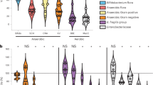 Fresh faecal samples were collected, and weight was recorded. Subsequently, faecal samples were diluted in 1 ml PBS and homogenized by bead-beating with 1 mm zirconia/silica beads two times for 25 s each time using a Mini-Beadbeater-96 (BioSpec). To determine colony-forming units, serial dilutions of homogenized samples were plated on LB plates with 50 µg ml−1 kanamycin and CHROMagar Orientation plates (blue colonies, K. oxytoca MK01/ DSM5175; purple colonies, E. coli Mt1b1; white colonies, S. Typhimurium). Plates were cultured at 37 °C for 1 day before counting. The colony-forming units of K. oxytoca and S. Typhimurium were calculated after normalization to the weight of faeces.