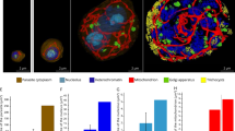 On the host side, our analyses of different infection stages provided further evidence that ‘Ca. E. childressi’ does not appear to consume considerable amounts of host DNA, RNA or histones (Supplementary Table 8). We found no evidence for downregulation of host transcription, as expected if nuclear DNA and RNA were consumed12. The infected host cell remained transcriptionally and metabolically active throughout the infection cycle, as host genes involved in glycolysis and oxidative phosphorylation were expressed, even in late-stage nuclei (Fig. 3 and Supplementary Table 8). Moreover, light and electron microscopy analyses revealed that the mussel host cells remained morphologically asymptomatic, apart from the swollen nucleus, with intact membranes and organelles (Extended Data Figs. 3 and 4).