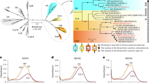 Genomes chosen for phylogenetic reconstruction of the ‘Ca. Kariarchaeaceae’ were obtained from GenBank, OceanDNA38 and Ocean Microbiomics Database39 on the basis of the taxonomic assignment in GTDB (r.220)40 and source databases. To exclude contaminating scaffolds in the ‘Ca. K. pelagium’ assemblies, scaffolds contributing to the pan-genomic contigs with core regions (see above) were selected. Genes were predicted with Prodigal (v.2.6.3)36 on the basis of the filtered assemblies (for ‘Ca. K. pelagium’) or entire assemblies (other members of the family). The predicted amino-acid sequences were used to reconstruct concatenation phylogeny with PhyloPhlAn (v.3.02)41 using the ‘phylophlan’ marker database, USEARCH (v.11.0.667)42 for marker identification, MAFFT (v.7.475)43 for alignment, TrimAl (v.1.4.1)44 for alignment trimming and RAxML (v.8.2.12)45 with 1,000 rapid bootstrap iterations for phylogenetic reconstruction. Only markers appearing in at least 60% of the genomes were included in the phylogenetic reconstruction. RAxML was run with automatic model selection: the best-fitting model with CAT approximation selected by the Bayesian information criterion (BIC) was VT (with empirical frequencies). The scaffold containing HeimdallR3 was placed on the resulting tree using the following strategy: homologues of two genes located on the scaffold were found in at least four other ‘Ca. Kariarchaeaceae’ genomes using BLASTp from NCBI BLAST+ (v.2.15.0)46 (E-value threshold of 1 × 10−15): gene G1 of unknown function and G2 coding for a DnaJ-like protein, and were recruited for phylogenetic placement. MAFFT alignments of the protein sequences of G1 and G2 were added to the concatenated alignment of the marker genes, and the resulting extended alignment was used to evaluate the species tree with RAxML to obtain model parameters for pplacer and update the branch lengths. The model used for the evaluation was obtained with ProtTest3 (v.3.4.2)47 among models supported by pplacer (LG and WAG): the best-fitting model according to BIC was WAG with Γ-distributed rates and empirical frequencies. The extended alignment and the updated species tree were used to place the HeimdallR3 scaffold using pplacer (v.1.1.alpha)48. The species tree shown in the main text corresponds to the RAxML tree evaluated using the extended alignment. The tree was midpoint-rooted but the position of the root was found to be in agreement with the phylogenetic reconstruction in GTDB.