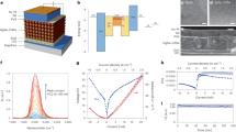 b, Current/radiance of LED. c, EQE/PCE of LED.