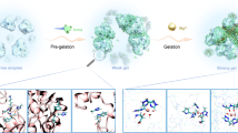 Gelation of FeSA@FibBLG dispersion containing AuNPs (FeSA@AH) was achieved following our previously reported procedure with some modifications40. For the synthesis of AuNPs, all glassware was cleaned with freshly prepared aqua regia (HCl:HNO3 = 3:1 vol/vol) and then thoroughly rinsed with water. A 2 ml solution of BLG fibrils (2.0 wt%, pH 2.0) was mixed with a 40 mM HAuCl4 solution to reach a final protein:gold mass ratio of 14.7:1. The mixture underwent a chemical reduction through the dropwise addition of a NaBH4 solution (0.8 ml) under a nitrogen atmosphere. The resulting solution was then dialysed to remove any remaining NaBH4 and concentrated to 2 ml with a dialysis membrane (Spectra/Por, molecular weight cut-off, 6–8 kDa, Spectrum Laboratories) against a 6 wt% PEG solution (Mr ≈ 35,000, Sigma-Aldrich) at pH 2.0. TEM imaging of AuNPs stabilized by BLG fibrils revealed three-dimensional particles with an average size of 1.32 nm (Supplementary Fig. 21a), determined by analysing six TEM images using ImageJ software v.1.8.0. For the preparation of FeSA@AH, 2 g of FeSA@FibBLG powder was dissolved in the resulting AuNP-attached BLG fibril solution (2 ml). The mixture was then transferred into a plastic syringe, the top part of which had been previously cut. The plastic syringe was covered with a section of a dialysis tube (Spectra/Por, molecular weight cut-off, 6–8 kDa), and the head of the syringe was positioned in direct contact with an excess of 300 mM NaCl solution at pH 7.4 for at least 16 h in a 4 °C cold room to facilitate gelation. The resulting hydrogel sample was kept under 4 °C. The working hydrogel was freshly prepared by mixing the aforementioned hydrogel with 0.1 ml of a glucose solution (8.0 M) immediately before further characterization or detoxification use. A BLG fibril hydrogel was obtained using the same procedure, except that the FeSA@FibBLG was replaced with an equal amount of BLG fibril dispersion.