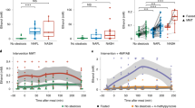 Weighed liver tissues were collected and immersed immediately in 10% neutral buffered formaldehyde. After overnight fixation, tissues were embedded in paraffin and cut into 5 μm sections for further haematoxylin and eosin (H&E) and oil red O (Sigma) staining. Images were captured by a Nikon Eclipse TI-SR fluorescence microscope. Fresh liver was homogenized in chilled normal saline and centrifuged (1,500g, 4 °C) for 15 min. GSH and MDA levels of the resultant supernatant were detected using the GSH assay kit (ab65322) and the lipid peroxidation (MDA) assay kit (ab118970), respectively. Hepatic and cellular lipid content was isolated using the chloroform/methanol-based method60, and quantified by using the triglyceride assay kit (ab65336) and the mouse total cholesterol ELISA kit (ab285242, SSUF-C), respectively.