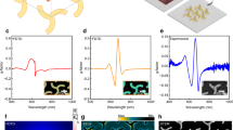 We use a 1,064 nm pulsed laser with a repetition frequency of 10 kHz and a pulse duration of 2 ns, to pump our vortex microlaser at room temperature. As shown in Fig. 4d, a ×50 objective lens (IOPAMI137150X-NIR, Mitutoyo) is used to converge the pump light to a spot with a diameter of ~5 μm and also collect the vortex beam generated from the sample. The following lens L1 (f = 200 mm) confocal with the objective lens, as well as L2 (f = 50 mm) and L3 (f = 300 mm) forming a 4f system, enlarges the real-space image of samples by 300 times in total to generate more in-plane optical path difference in the self-interference experiment. The real-space images are captured by an InGaAs infrared 1,280 × 1,024 CMOS camera (IMX990, Sony). Each interference fringe period in rows possesses ~40 pixels for spatial resolution in Fig. 5d and Supplementary Fig. 10d. Besides, the images, after deducting CMOS intrinsic noise and ambient background noise, are applied data-smoothing along columns with a window size of 30 pixels. Meanwhile, real-space images are also focused into a monochromator with a 600 g mm−1 optical grating and an infrared array detector (IsoPlane SCT320 and NIRvana 640, Princeton Instruments), which has a spectral resolution of ~0.08 nm. Polarizer rotation is controlled manually with a maximum uncertainty of ±1° in Fig. 5c and Supplementary Fig. 10c.