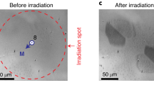 Figure 3b shows the time-dependent changes in the z component of the magnetization triggered by the magnetic field step, measured in correspondence with the centre of the disc, with the same pump fluence used in Fig. 2b (~0.3 mJ cm–2). As the magnetic field step excited the Bi:LIGG sample, we observed a pronounced, damped oscillation superimposed with a sudden change in magnetization direction. The frequency of the oscillations (~6 GHz) is in good agreement with the ferromagnetic resonance frequency of similar Bi-substituted rare-earth iron garnets46,47.