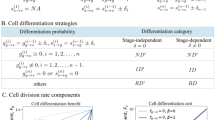 SWG59 (for mitosis) or SWG16 (for apoptosis) young adult worms were paralysed in 0.1% tetramisole (Sigma-Aldrich T1512) for 3 min on a cover slip precoated with 0.1% poly-l-lysine (Sigma-Aldrich P8920) and mounted on 2% agarose pads. Images were acquired with a spinning-disk confocal microscopy (Zeiss C-Apochromat, ×63/1.2NA, Yokogawa CSU-X1 scan head and Hamamatsu ORCA-Flash4.0 camera) on 41 different z planes spaced 1 μm apart, recording one full stack every 30 s. After maximal projections of individual movies in Fiji, the number of metaphase spindles or each new engulfment event—together with their position relative to the distal tip or proximal turn—were manually measured. The frequency of mitotic or apoptotic events along the total amount of imaging time was then binned to obtain a probability of event per unit length of the germline (Supplementary Fig. 1c). From these rates, an estimate of cumulative probability can be deduced. For example, at position x of the gonad, considering that the rate of apoptosis per hour is pa, then the associated total probability of a cell to survive a period of 3 h is \({p}_{\rm{s}}={(1-{p}_{\rm{a}})}^{3}\). Hence, the estimated total cell death should be ~100 × (1 − ps)%.