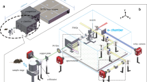 Before an animal can be allocated to the experiment, the irradiation setup, beam formation and monitoring methods need to be developed and their functionalities need to be demonstrated. This has been performed by verifying animal-model-defined beam readiness parameters for daily beam availability, long-term reliability and shot-to-shot stability, setting new standards for quality control in proton LPA. These parameters and their comparison with the corresponding acceptance window are given in Fig. 2 for the different timescales of interest. The daily available cut-off energy Ep,max—the most common parameter for benchmarking laser-driven proton beams—is plotted over the period of two years (Fig. 2a). Mostly close to ~60 MeV, the primary LPA source reliably provides a comfortable safety margin with respect to the required 40 MeV over the long term. On selected days dedicated for campaign preparation or mouse irradiation itself (Fig. 2a, green and blue bars), ranging over a half-year period, we performed all the procedures from start up to irradiation (QA RCF stacks or mice) to verify the daily availability of application-specific dose delivery parameters. Figure 2b depicts the daily average values (denoted by the overbar) obtained for the dose per shot \({\bar{D}}_{{{{\rm{shot}}}}}\), relative depth–dose inhomogeneity \({{\Delta }}{\bar{H}}_{{{{\rm{depth}}}}}\) and relative lateral dose inhomogeneity \({{\Delta }}{\bar{H}}_{{{{\rm{lat}}}}}\). Figure 2c summarizes the shot-to-shot stability during a selected day (Fig. 2a,b, blue-coloured data) of the irradiation campaign. The two graphs on top show the considerably high spectral stability of the transported bunches, depicted by the normalized spectral bunch composition determined via TOF, and the corresponding relative fluctuation of the mean bunch energy ΔEmean (Fig. 1c). The fluctuation in the dose per shot Dshot depicted below again accentuates the importance of the multishot dose delivery scheme applied. The plot is completed by the depth–dose inhomogeneity score ΔHdepth deduced from the TOF spectrum.