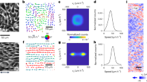 The vorticity field ω is obtained from the velocity field data \({({u}_{x},{u}_{y})}^{{\mathsf{T}}}\), using ω = ∂xuy – ∂yux. Both of the spatial derivatives are numerically computed using a five-point stencil at every grid point. To identify the locations of the zero-vorticity contours, we then calculated a binary field from the vorticity field using the ternary expression: 1 if w > 0, else 0. Contours of zero vorticity were then traced using a marching squares algorithm that preserves orientation, that is, always keeping sites of positive vorticity on its right (Extended Data Fig. 4).